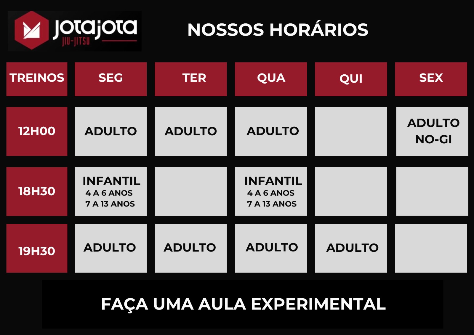 Nosso objetivo é proporcionar um ambiente acolhedor e seguro, onde todos possam aprender a se defender e se posicionar em situações de risco, enquanto fortalecem corpo e mente. Venha fazer parte da nossa família Jotajota e descubra como o Jiu Jitsu pode transformar sua vida.